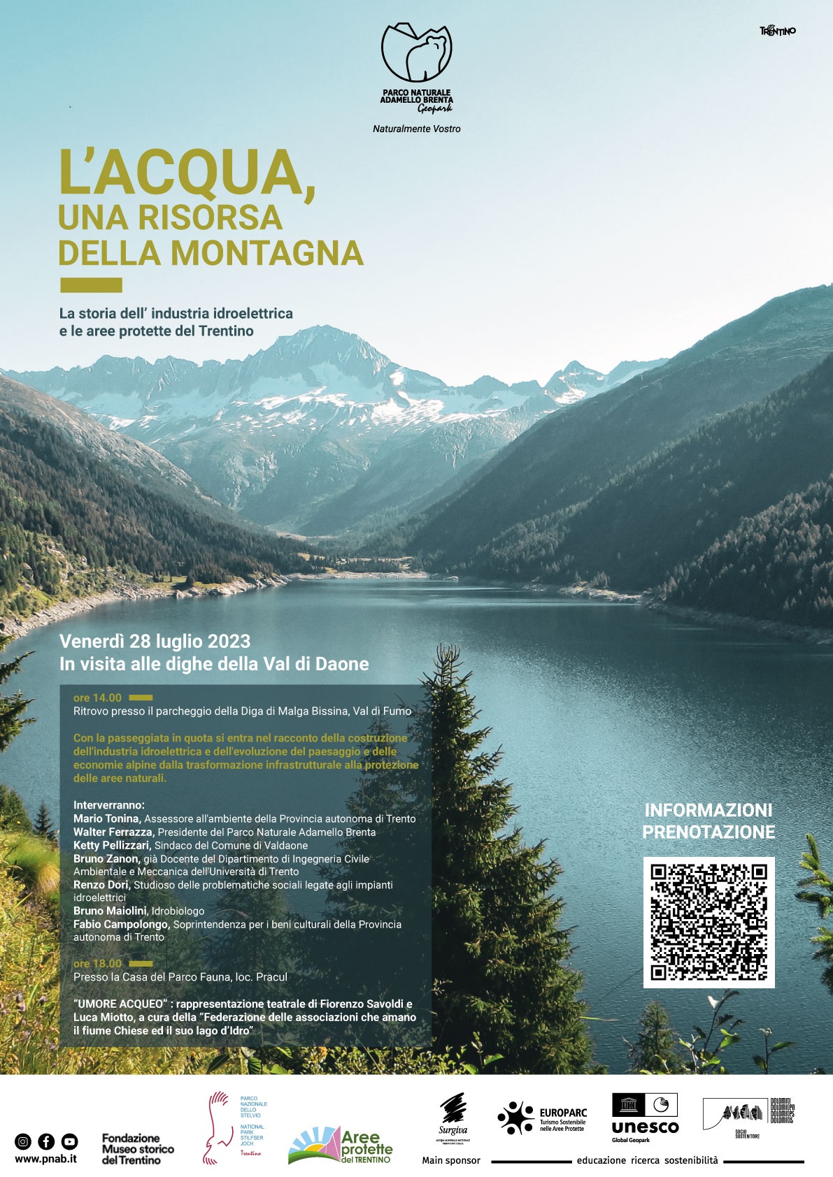Questo terzo appuntamento, dal titolo "La storia dell'industria idroelettrica e le aree protette trentine - In visita alle dighe della Val di Daone", si tiene il 28 luglio 2023 con ritrovo ad ore 14 presso il parcheggio della Diga di Malga Bissina, in Val di Fumo (in caso di maltempo viene rinviato al 4 agosto).