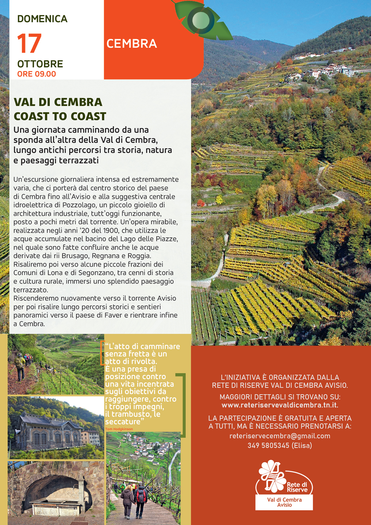 - Iscrizione obbligatoria entro venerdì 15 ottobre e fino ad esaurimento posti (i posti sono limitati) a reteriservecembra@gmail.com o al 349 5805345 (preferibilmente via whatsapp o SMS).