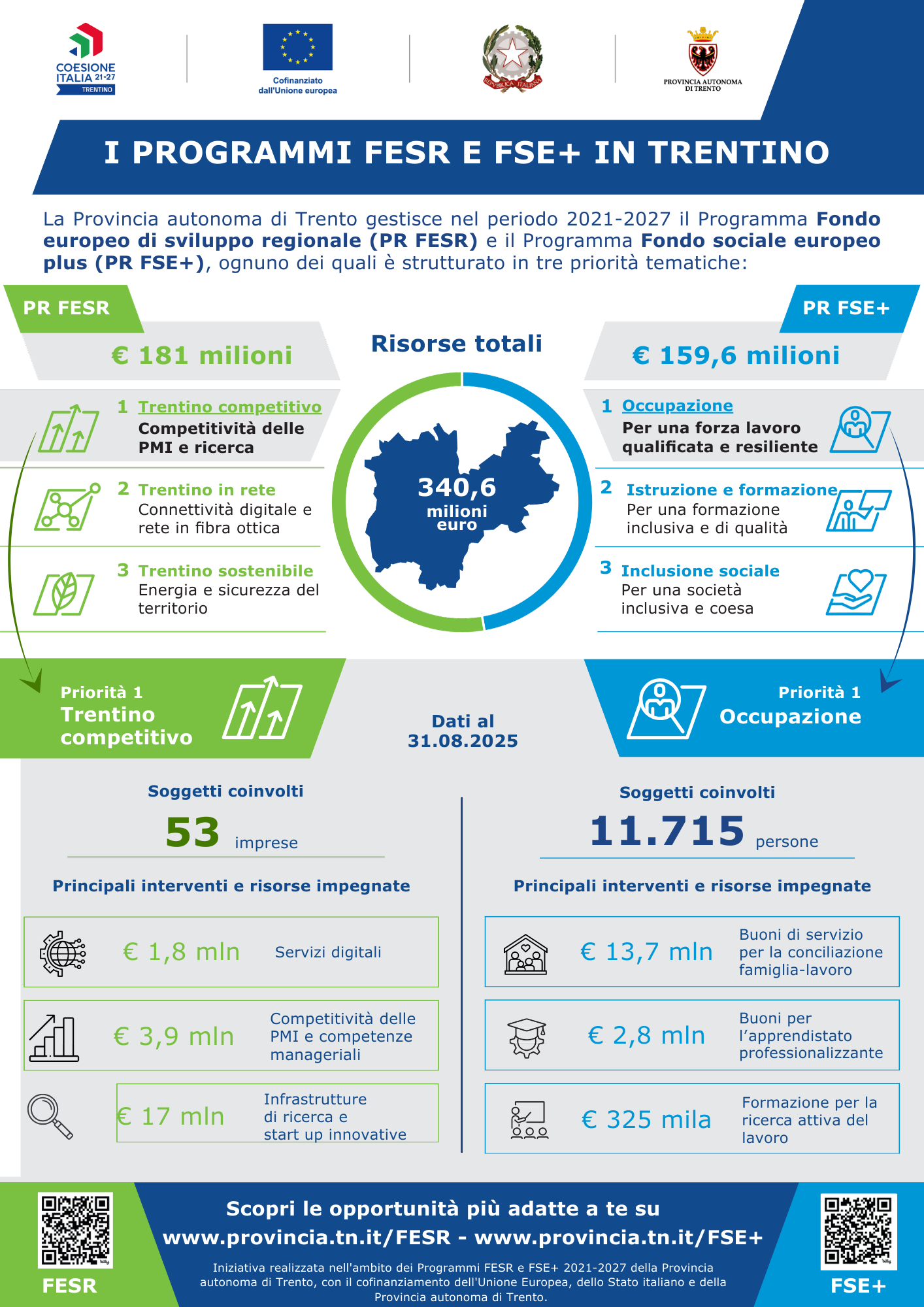 Infografica 2025: I Programmi FESR e FSE+ in Trentino