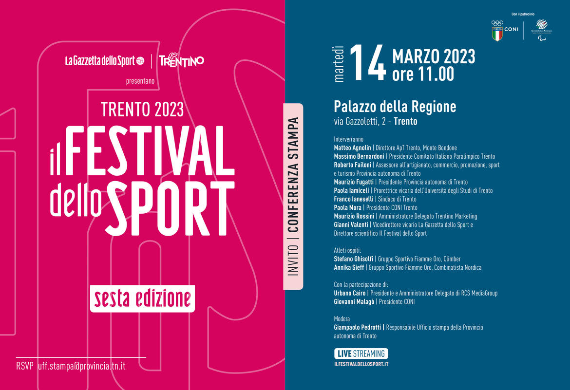 Será a vez de Gianni Valenti, vice-editor adjunto da La Gazzetta dello Sport e diretor científico do Festival, e Maurizio Rossini, diretor administrativo da Trentino Marketing, revelarem o tema e as datas da edição de 2023 que, como sempre, trará os grandes campeões do esporte internacional para Trento.